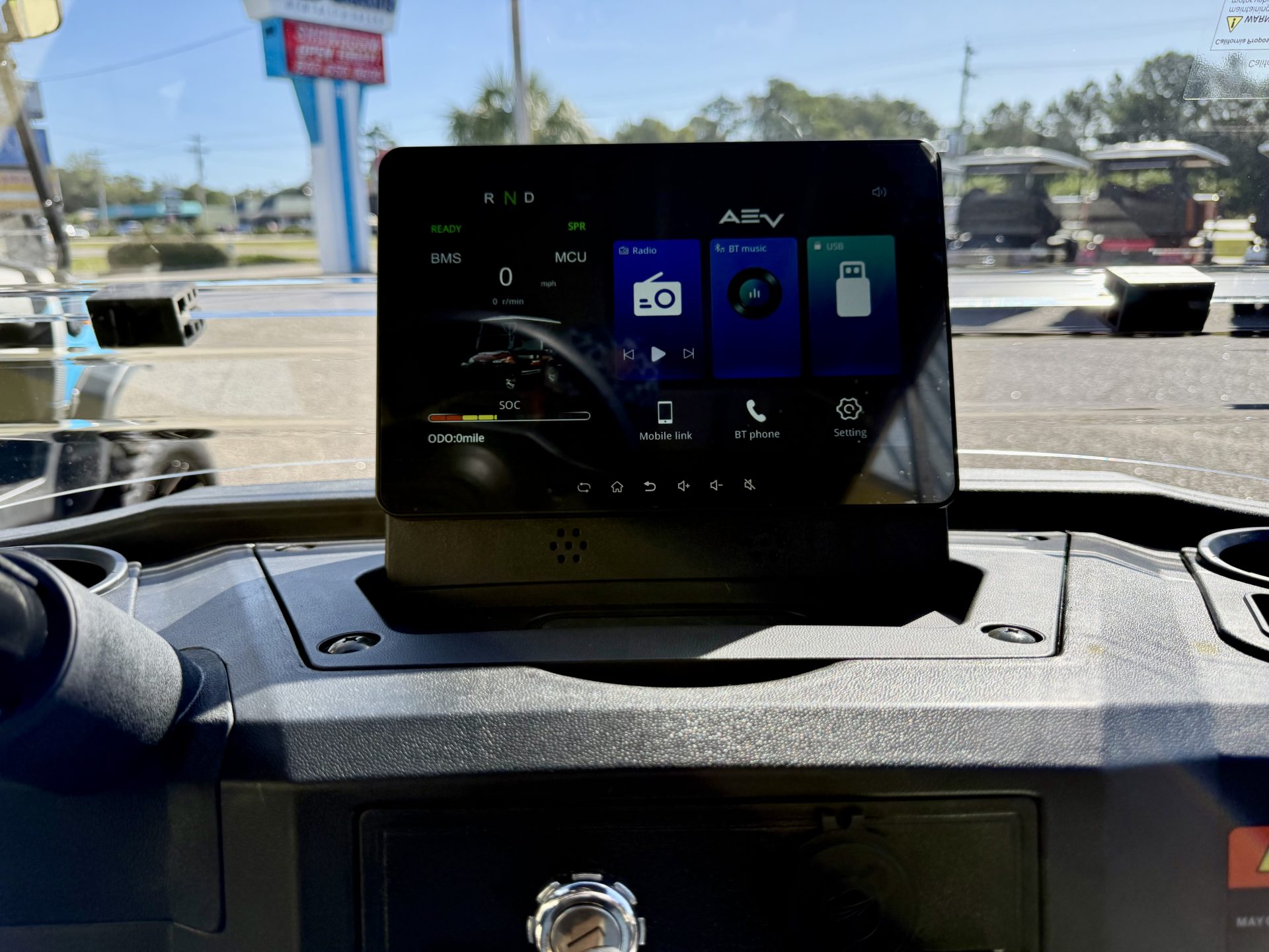 Folding DOT Rated Toughened Glass, Molded Instrument Panel, LED Screen, Bluetooth/FM Radio/Andriod Auto/Apple Car play, State of Charge Meter, Multiple Cup Holders, Double USB Ports, 12V Power Supply