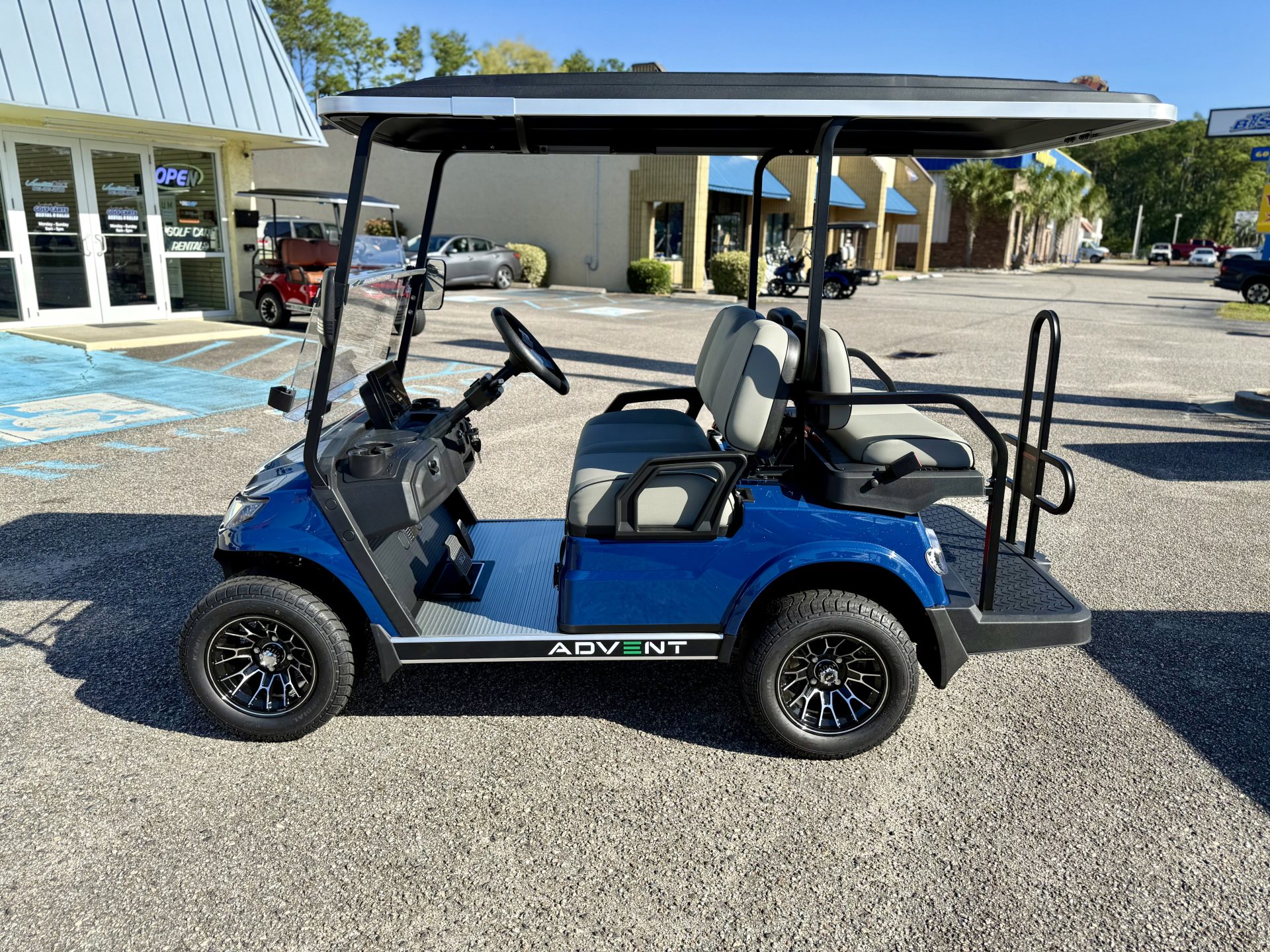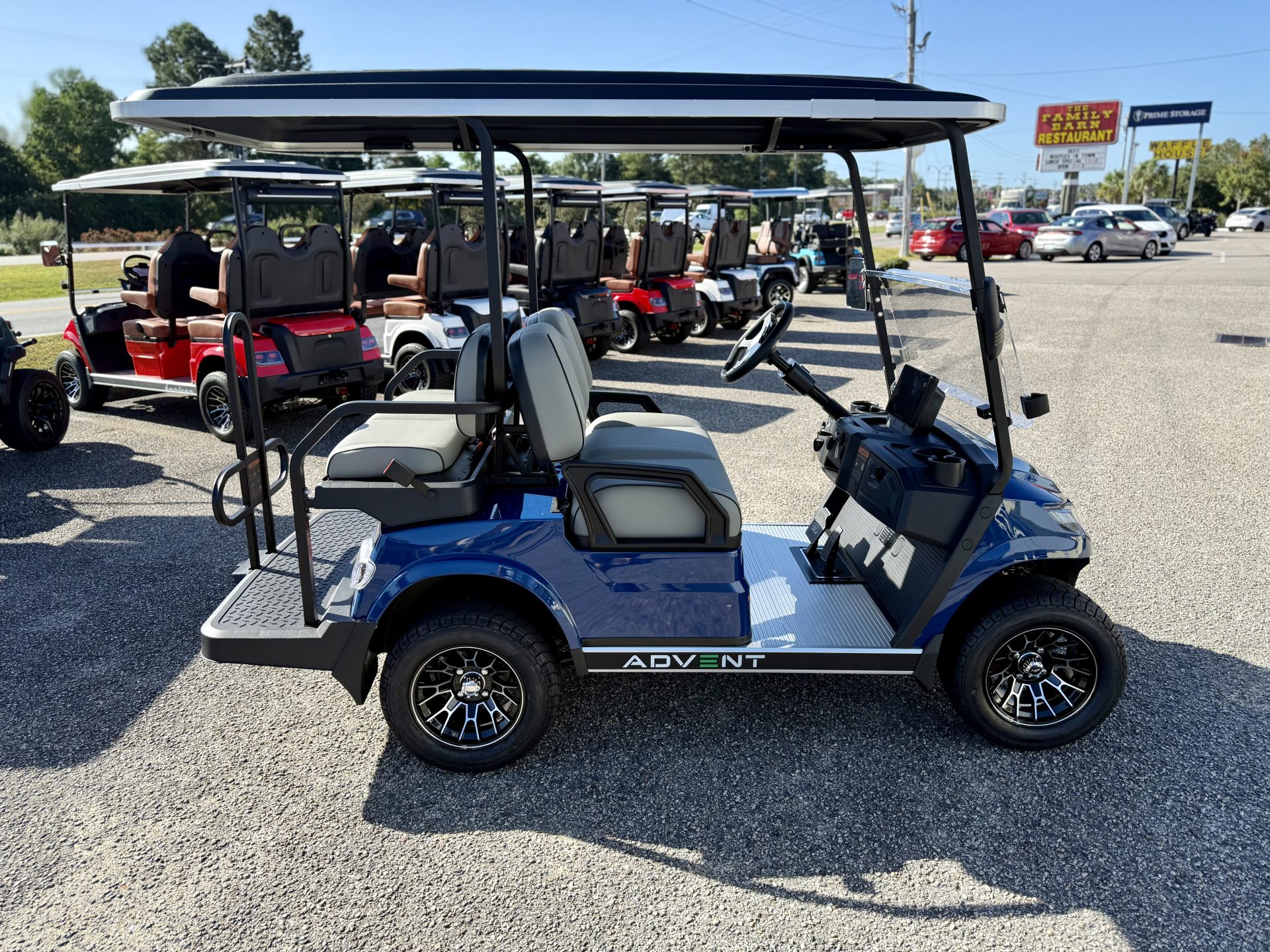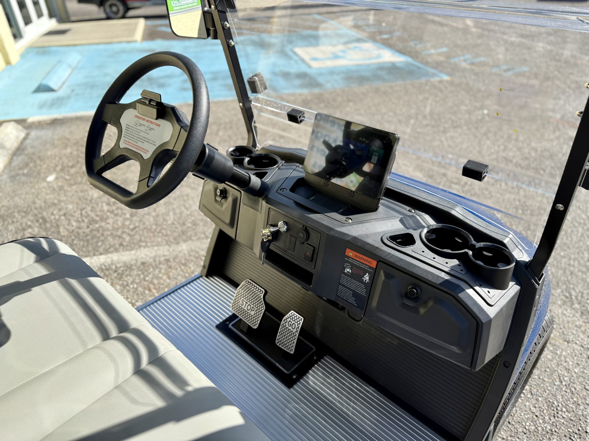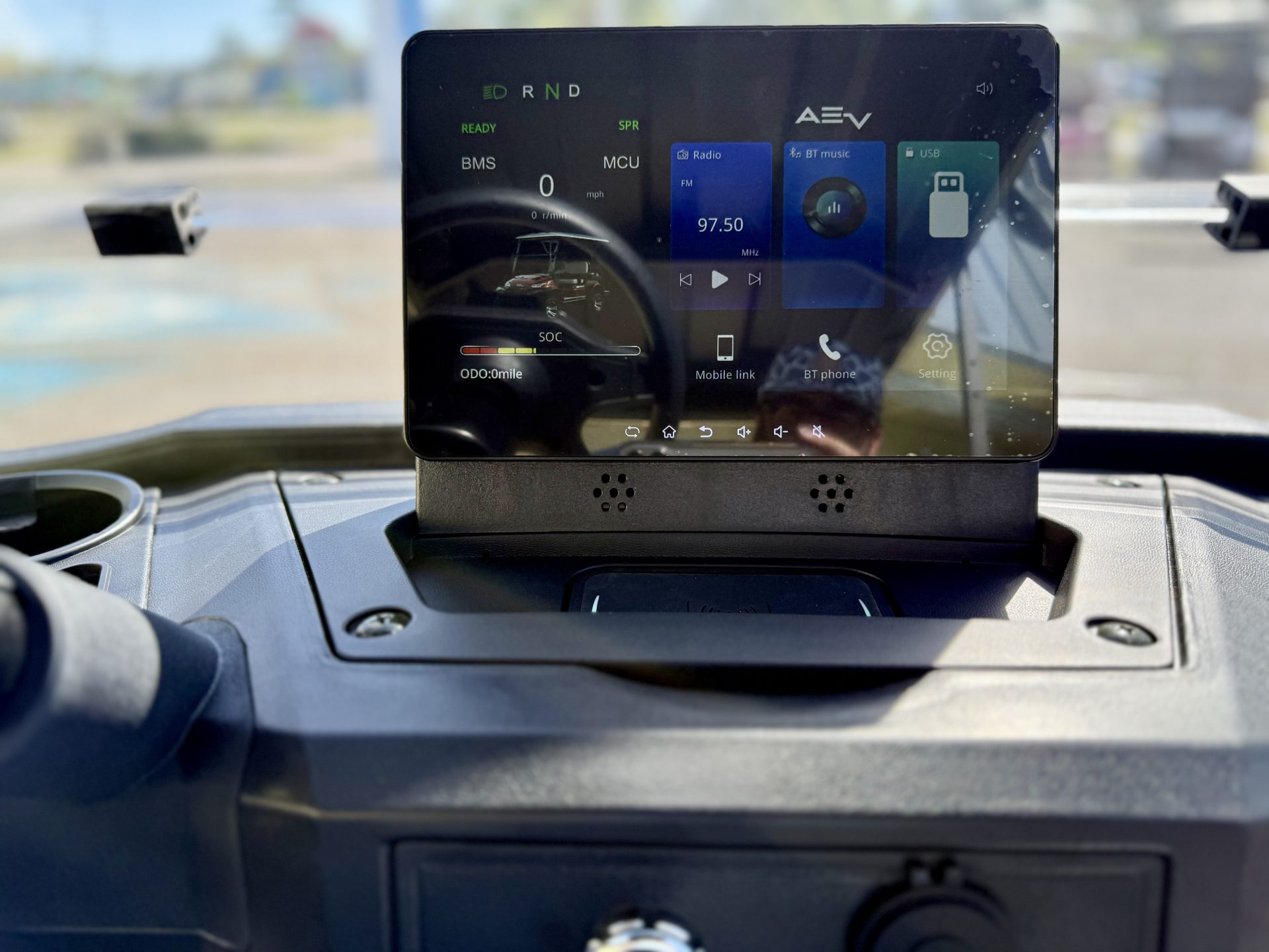 Folding DOT Rated Toughened Glass, Molded Instrument Panel, LED Screen, Bluetooth/FM Radio/Andriod Auto/Apple Car play, State of Charge Meter, Multiple Cup Holders, Double USB Ports, 12V Power Supply
