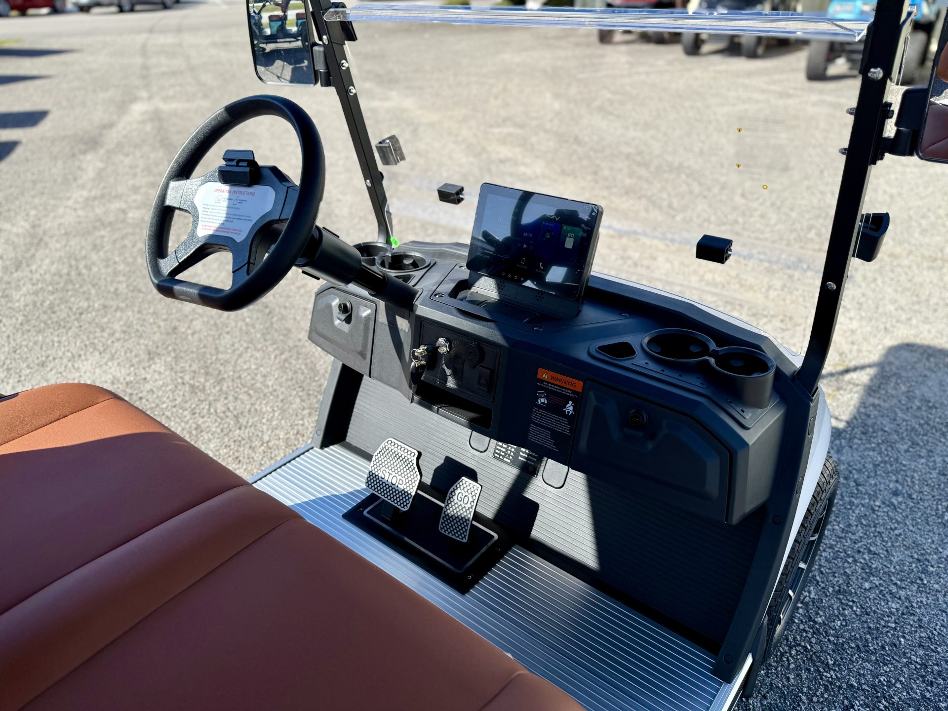 Folding DOT Rated Toughened Glass, Molded Instrument Panel, LED Screen, Bluetooth/FM Radio/Andriod Auto/Apple Car play, State of Charge Meter, Multiple Cup Holders, Double USB Ports, 12V Power Supply