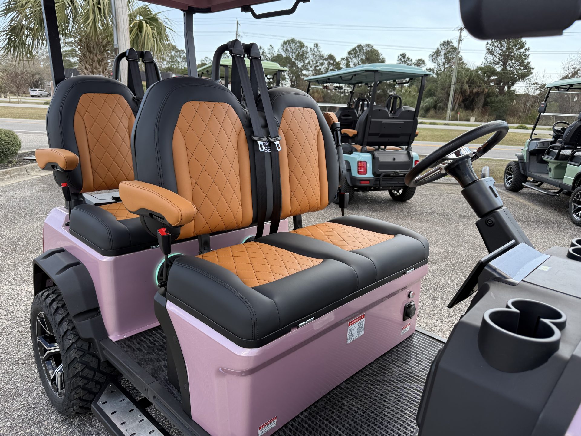 - Storage Solutions including a tray under the seat with glove boxes, sturdy hinges, and a storage box on 4-passenger forward-facing carts