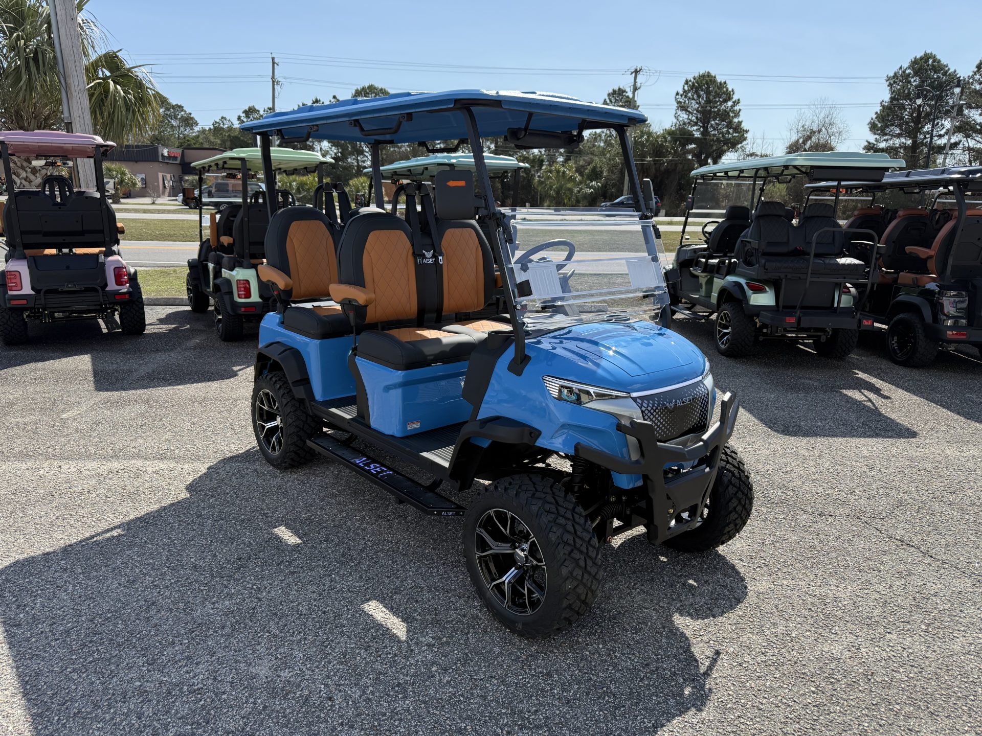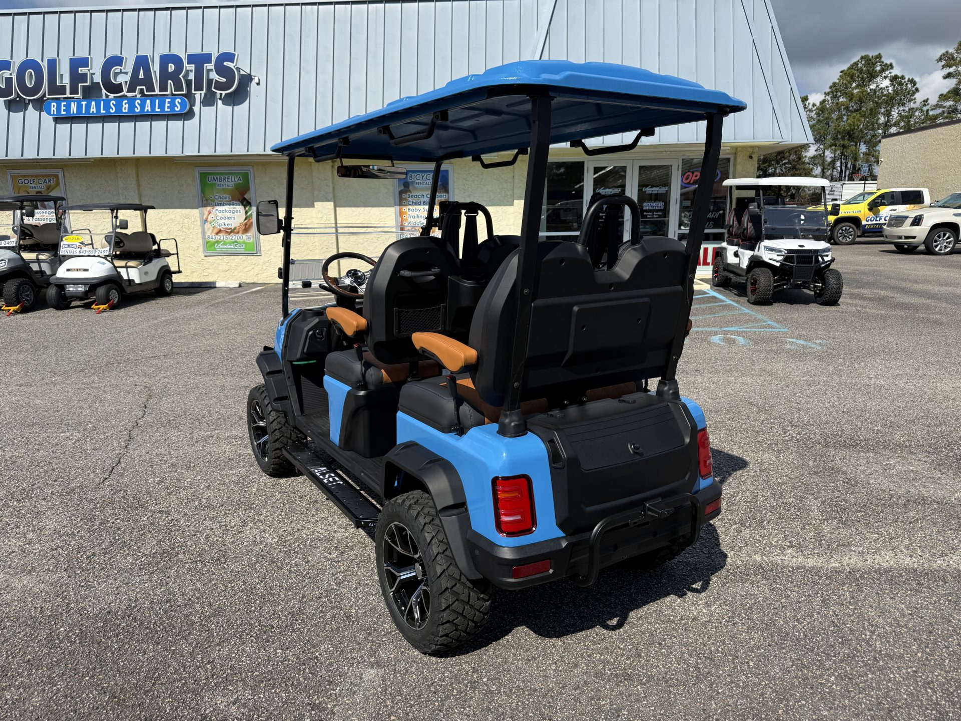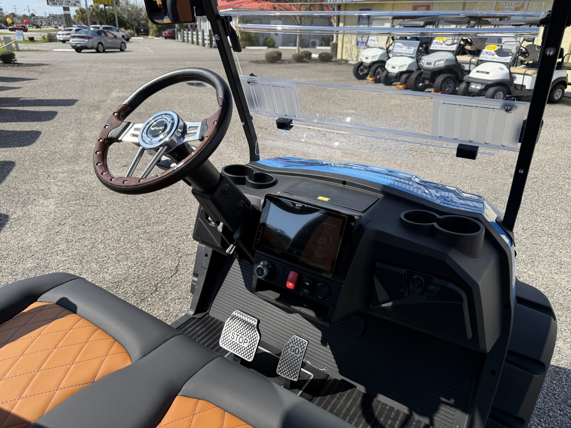 - Storage Solutions including a tray under the seat with glove boxes, sturdy hinges, and a storage box on 4-passenger forward-facing carts