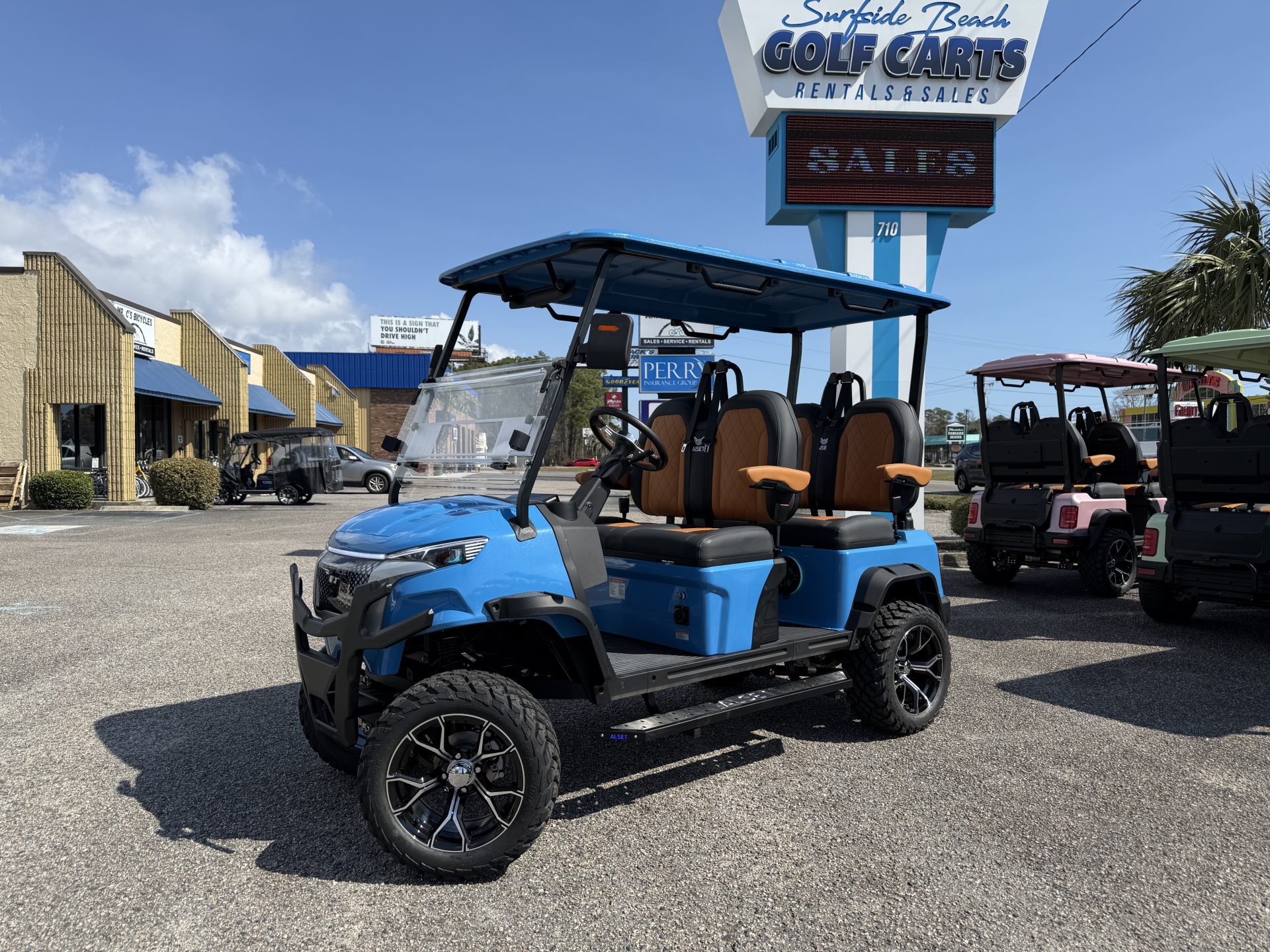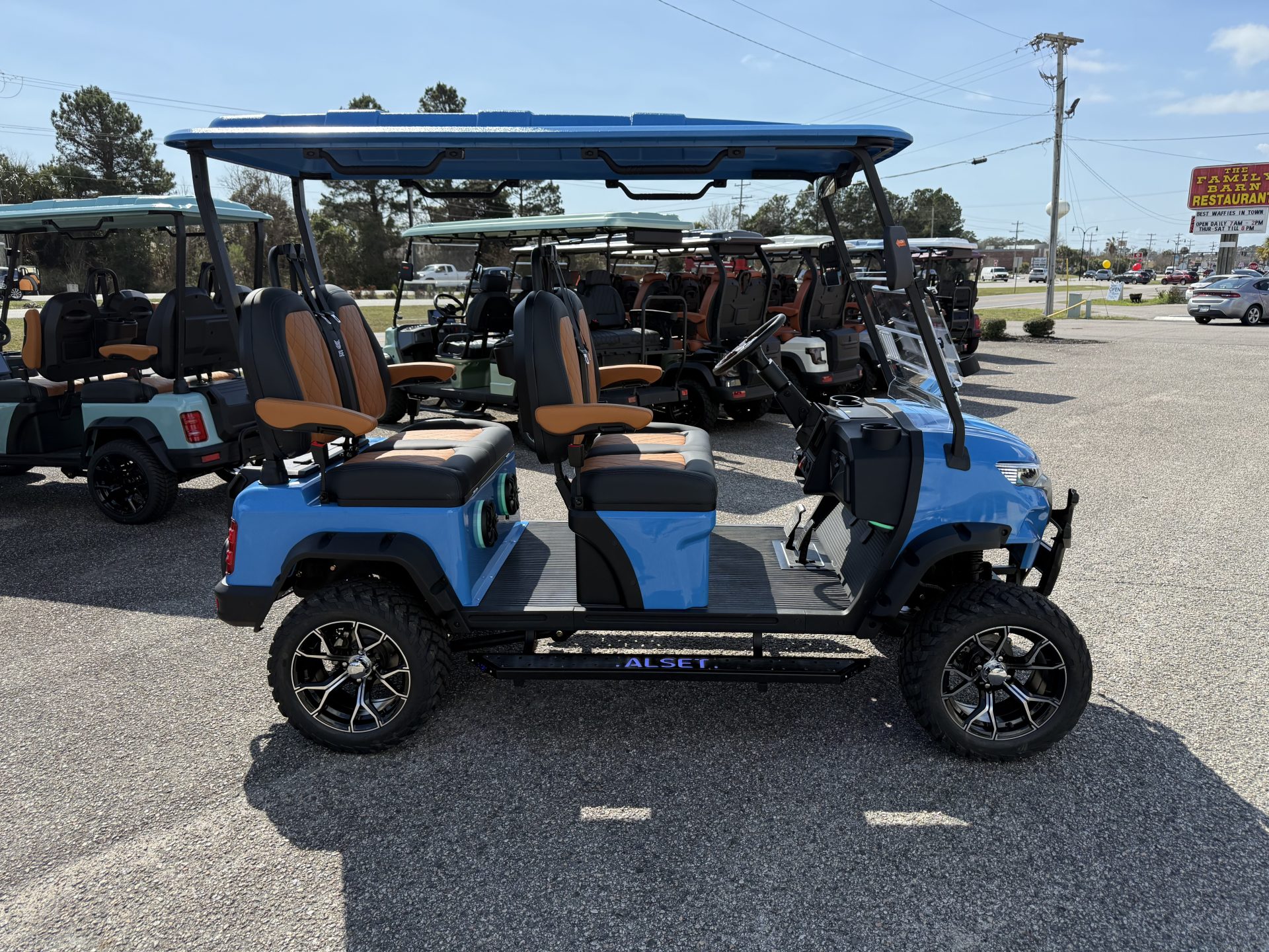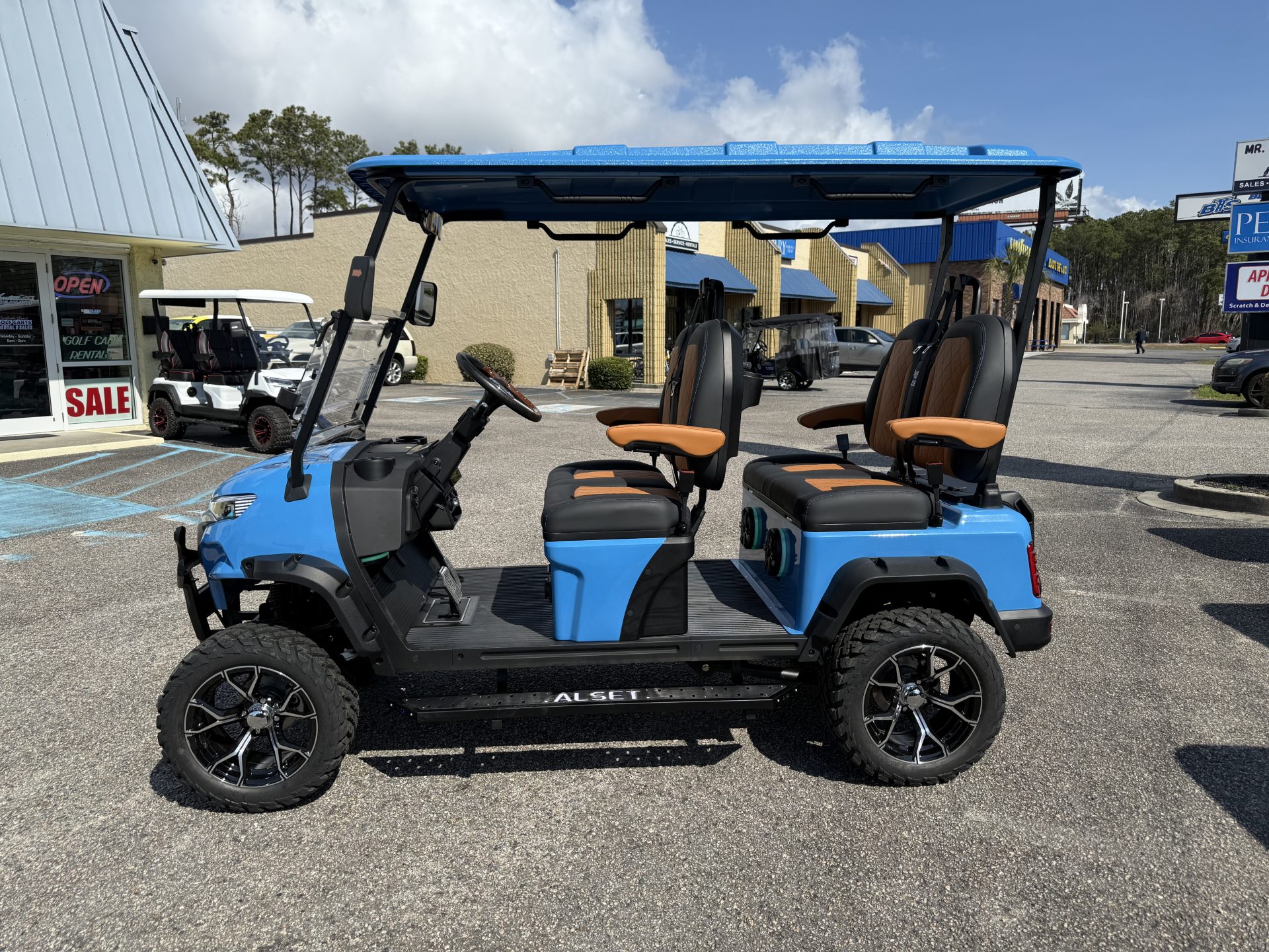 - Storage Solutions including a tray under the seat with glove boxes, sturdy hinges, and a storage box on 4-passenger forward-facing carts
